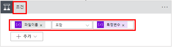 - 첫번째로 생성한 변수, [파일이름]에 두번째로 생성한 변수, [특정변수]의 포함 여부를 검사