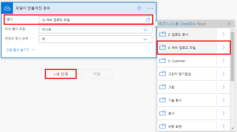- 흐름 트리거 : 파일이 만들어진 경우(OneDrive for Business)
