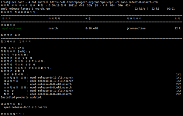 - 명령어 : dnf -y install https://dl.fedoraproject.org/pub/epel/epel-release-latest-8.noarch.rpm
