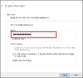 - 인증서 비밀번호 입력