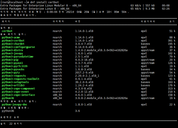 - 명령어 : dnf -y install certbot