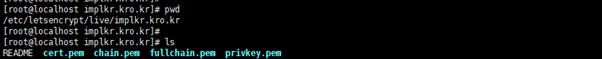 - 명령어 : cd /etc/letsencrypt/live/implkr.kro.kr
