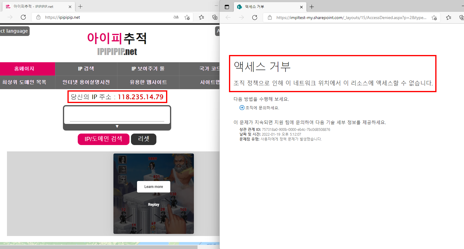 SharePoint, OneDrive에 인증된(사내) 공인IP 기준으로 접속 제어(Access-List) 정책을 생성하여