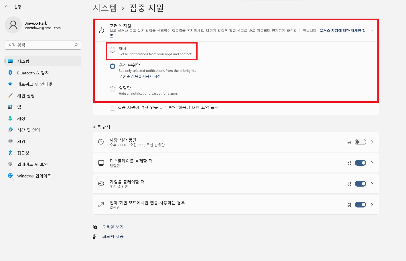 4. 기존 [우선 순위만] 에서 [해제]로 설정 변경