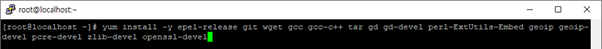 yum install -y epel-release git wget gcc gcc-c++ tar gd gd-devel perl-ExtUtils-Embed geoip geoip-devel pcre-devel zlib-devel openssl-devel