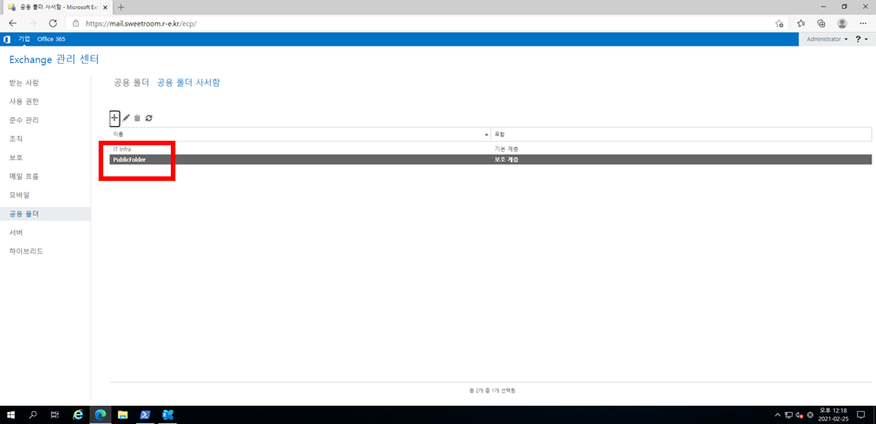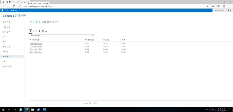 1. Exchange Onpremise에서 임의의 공용 사서함를 생성합니다.