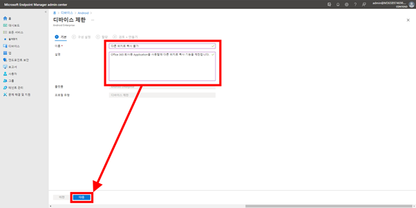 4. [이름] / [설명]에 필요한 내용을 입력 후 [다음]을 선택